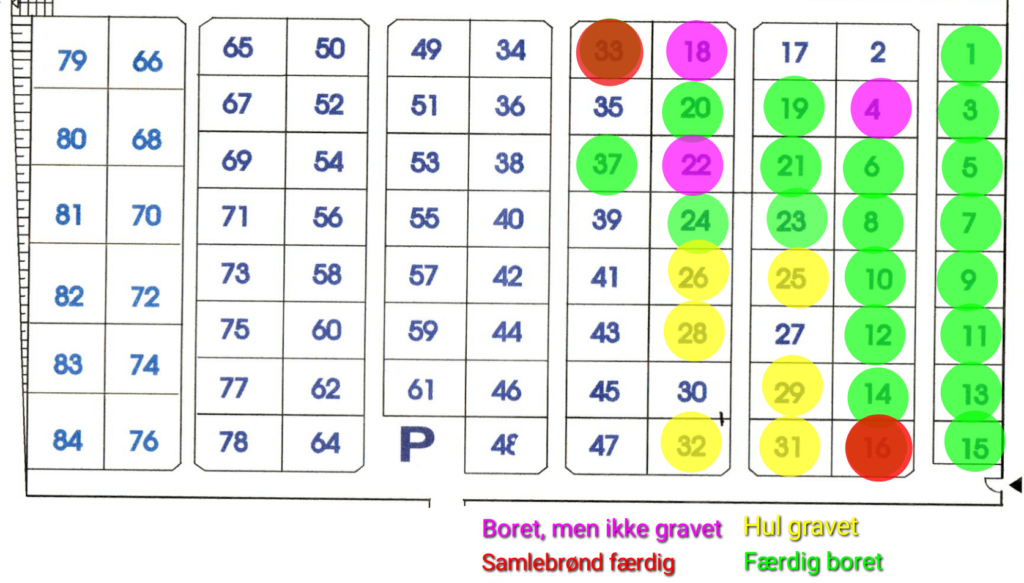 - Boret “hovedledning” på havegang 3 (fra 33 til 47)