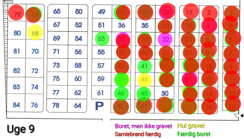 I denne uge er der gjort yderligere 12 samlebrønde færdig.