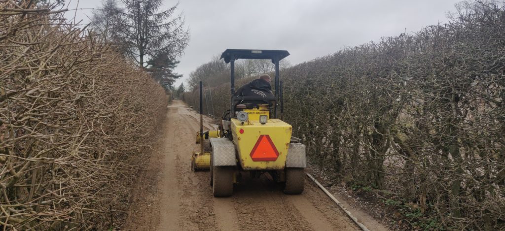Vores veje blev afsluttet med 3-5 cm finstabilgrus i fuld bredde