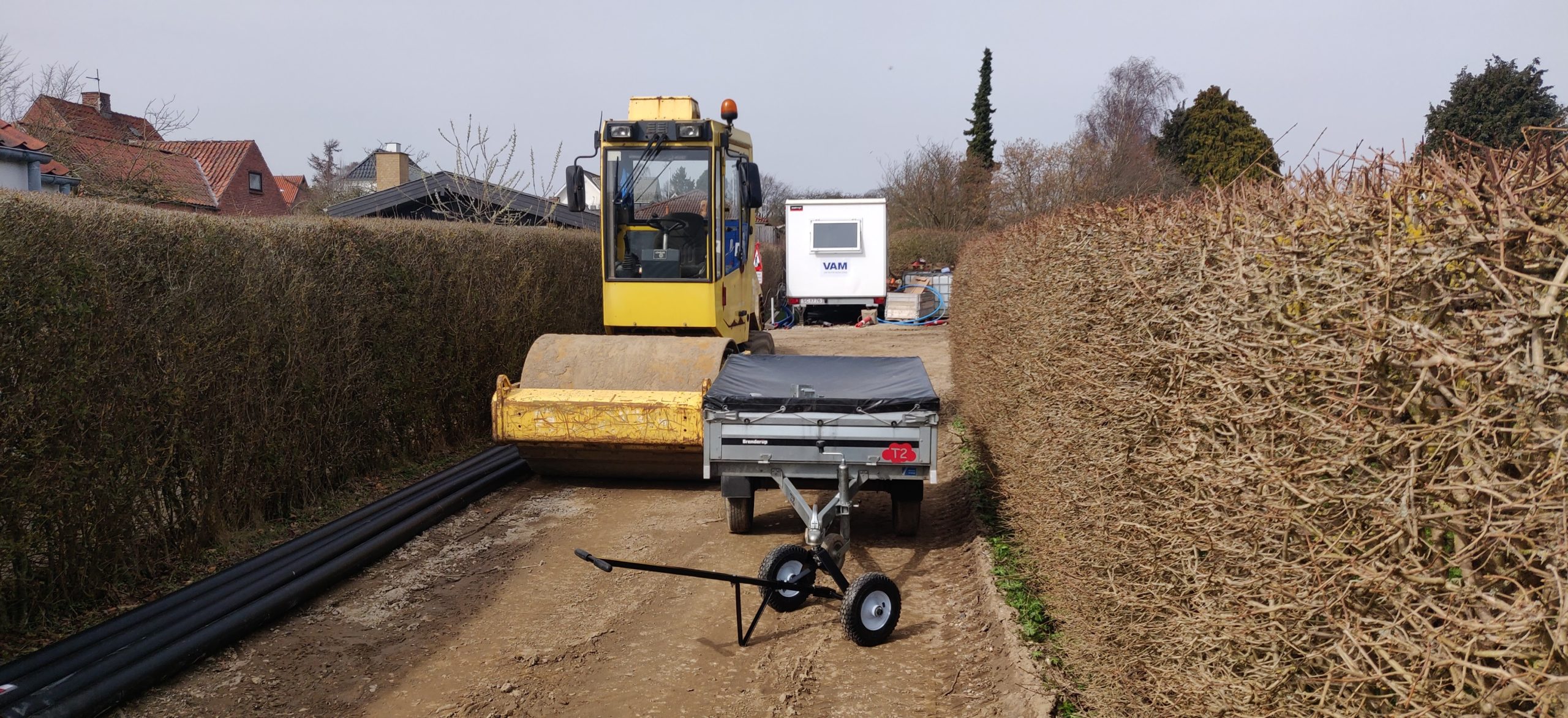 Der blev stampet med en pladevibrator eller stor vejtromle.